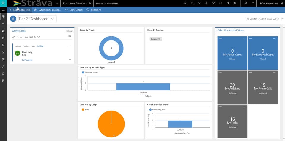 FastTrack comes with a library of pre-built dashboards for the customer service area of Dynamics 365.