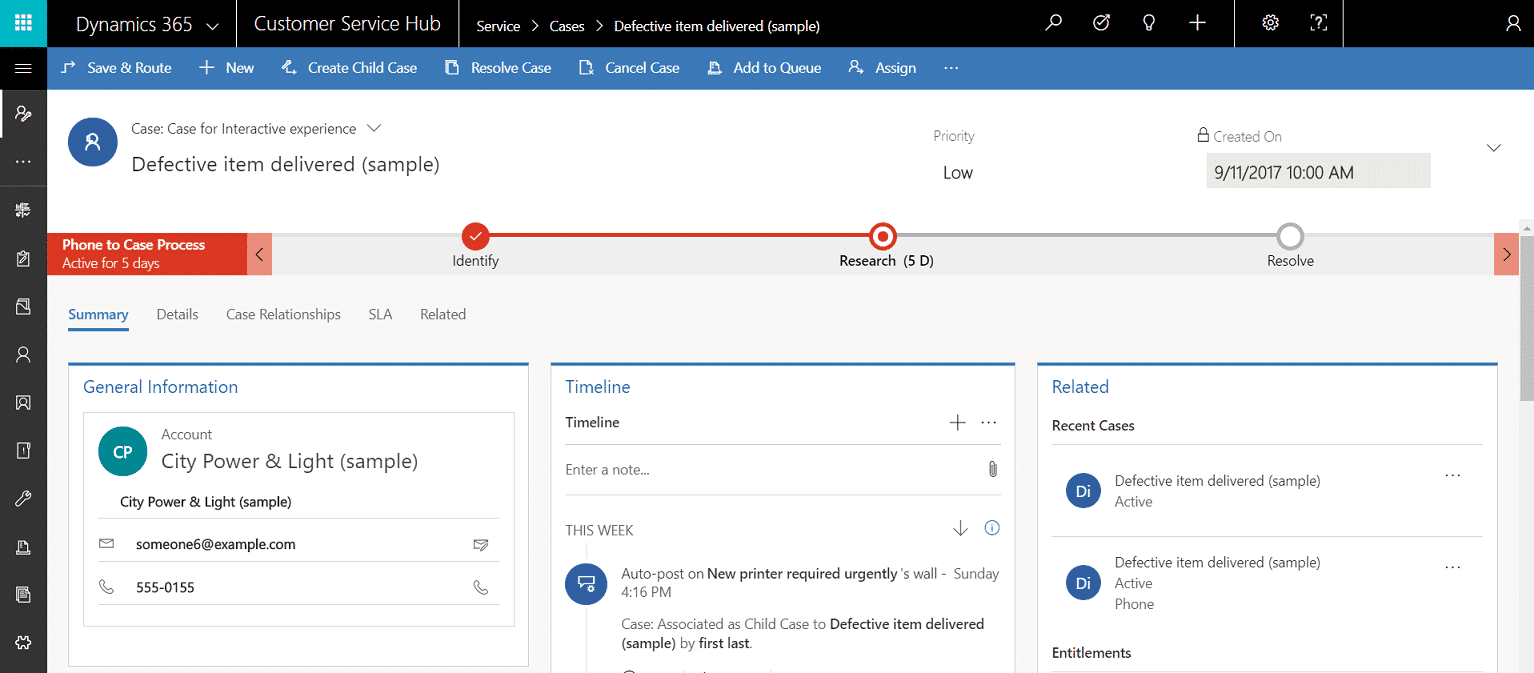 Creating and managing a case can’t be any simpler. With the intuitive case form in the Customer Service Hub, you can do all your important tasks and actions without navigating to different parts of the application.